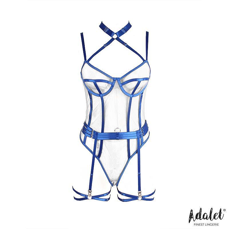 ADALET LINGERIE Killye Mesh Teddy with Strasps and Leg Rings (Blue), mesh teddy with garters