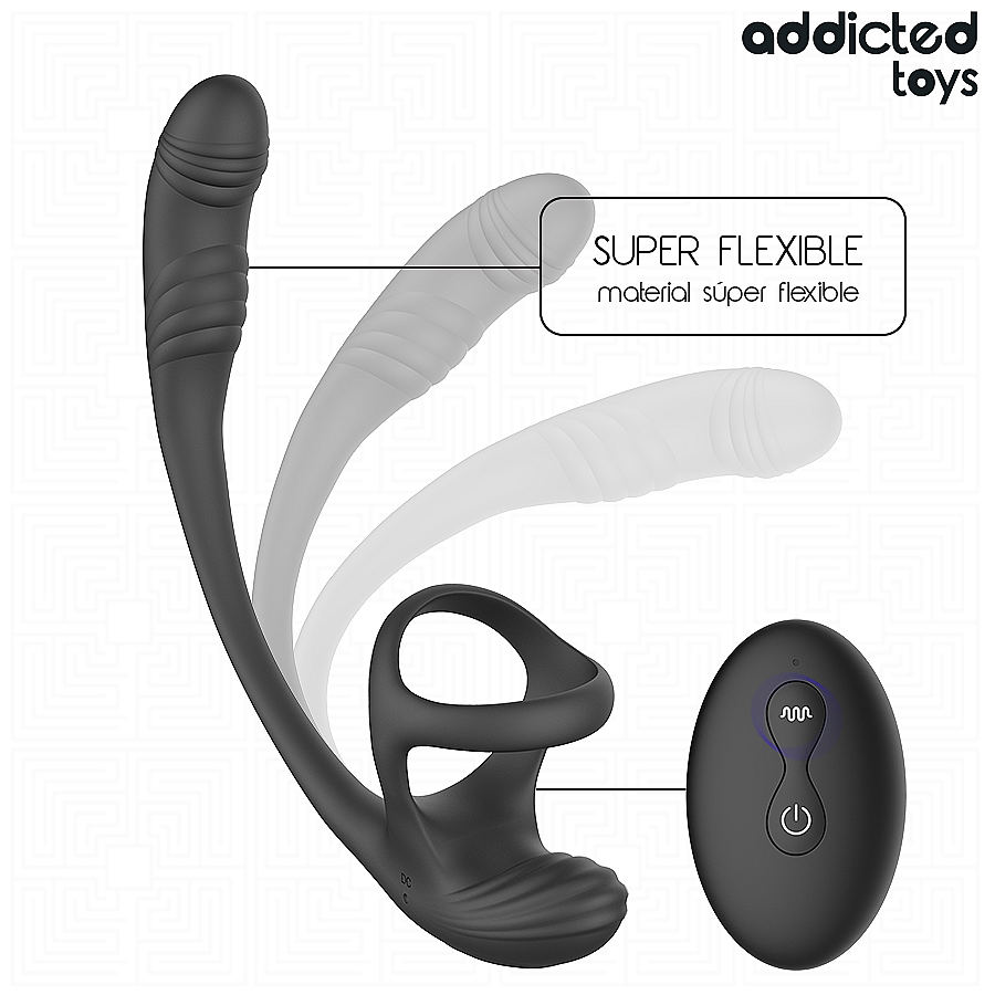 Addicted Toys Anal Plug with Vibration by Addicted Toys tempts with triple stimulation: a ring at the base of the penis and testicles boosts firmness and pressure, a textured accessory under the testicles adds tingling thrills, and a prostate egg with 360° waving delivers precisely targeted delight. 10 vibration modes for the testicle area let you switch from gentle hums to bold pulses, while 10 waving functions with 360° motion set the egg dancing in captivating circles. A wireless remote hands over the power to you or your partner—without breaking the rhythm. Premium silicone and ABS feel silky, are body-safe, and stay comfy for extended wear. The IPX7 waterproof build simplifies cleaning and invites steamy shower play. With USB rechargeable power, you get up to 50 minutes of run time after about 150 minutes of charging. The ergonomic 19.5 × 3 cm size and 137 g weight sit discreetly while you fine-tune the tempo to taste.