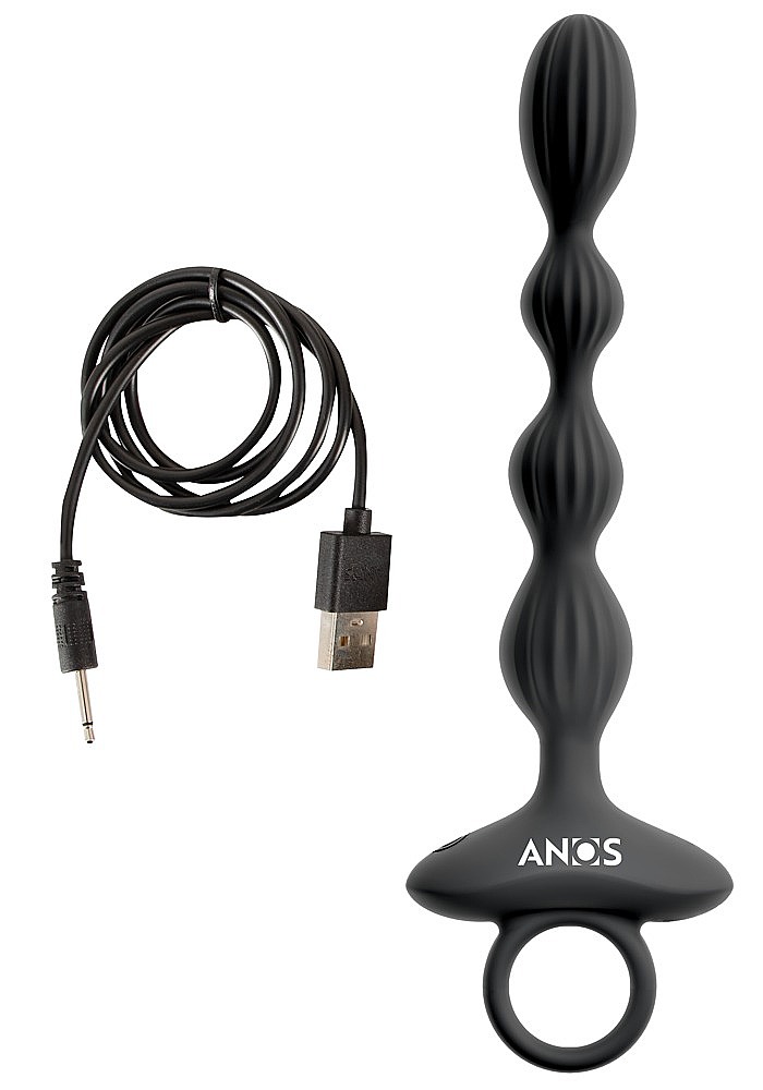 ANOS Flexible Anal Beads With Jumping Vibrations bring deep, intense backdoor pleasure with a playful twist. Four grooved vibro-beads stroke you one by one, while the silky-smooth silicone slides in gently for seamless comfort. Dual motors ignite 10 powerful vibration modes that you can swap with a single push-button, setting the tempo to your desire. A special jumping mode sends impulses hopping from bead to bead, surprising you with every wave and keeping the anticipation deliciously high. The extremely flexible body adapts to your movement, and the tapered design helps the beads stay securely in place. A wide stopper with a practical ring-shaped handle gives you confident control, easy guidance and pleasurable removal, while preventing overly deep insertion. Convenient USB charging keeps your toy ready for encore moments, and the balanced 93 g weight suits both solo exploration and couples’ play when you want an electrifying backdoor spark.