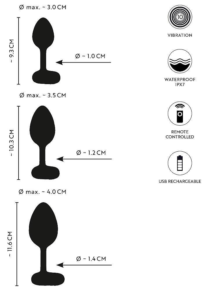 - Set: 3 vibrating anal plugs + remote control