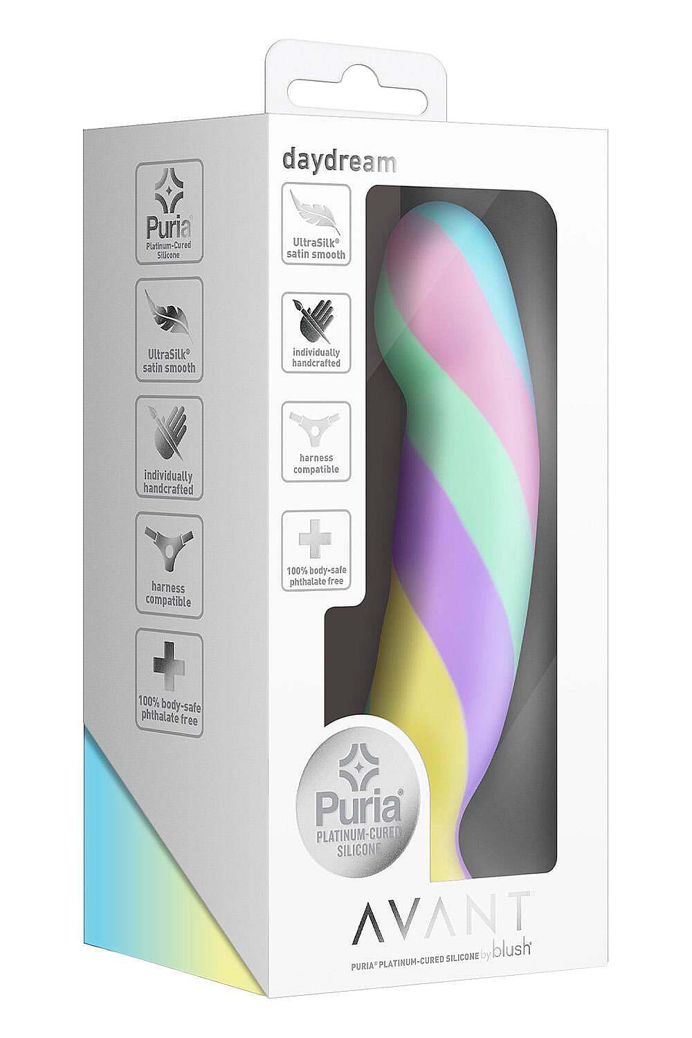 Blush Avant Daydream Dildo by Blush is a stylish dildo designed for those who want refined aesthetics, comfort, and teasing functionality in one beautiful form. Its artisanal handcrafted design gives every piece a unique character and a more exclusive feel. The broad, smooth head is expertly shaped to enhance both G-spot and P-spot pleasure with precise and satisfying targeting. Its gently curved shaft improves comfort, control, and ease of use, whether you prefer slow teasing or more intense play. Because it is harness compatible, it invites both solo discovery and adventurous partner play, including hands-free exploration. Made from premium Puria platinum-cured silicone and finished with UltraSilk satin smoothness, it feels irresistibly soft on the skin while remaining non-porous, hypoallergenic, phthalate-free, and easy to clean. It blends seductive performance with body-safe practicality for a truly pleasurable experience.