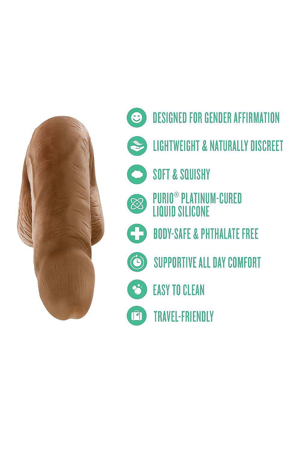Blush UrSelf Affirm Dildo by Blush is a silicone packer created to support comfortable wear and personal expression. Made with Purio, a 100% body-safe platinum-cured liquid silicone, it delivers a soft, realistic feel that gently adapts to the body and warms naturally with touch. Its lifelike shape and flexible form rest comfortably against the skin, creating a natural and discreet look under clothing. The lightweight construction makes it easy to wear throughout the day, while the durable design adds practical value to your daily routine. Its smooth, non-porous surface helps maintain hygiene, makes cleaning simple, and keeps body contact comfortable. Thoughtfully designed for day-to-day wear, subtle styling, and moments when you want to feel more authentic and self-assured, this packer combines practicality with a reassuringly realistic finish.