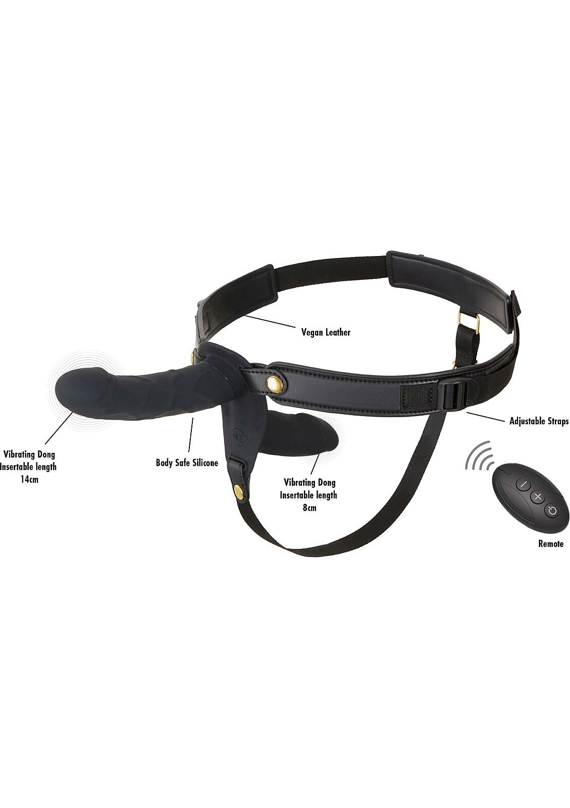Hidden Desire Inferno Double Vibrating Pleasure Penis Strapon (14 cm) brings power and play to every thrust. The realistic vibrating shaft, secured by a sturdy harness, dives deep to thrill your partner, while a second internal vibrator pampers the wearer with throbbing pulses. The body-safe silicone feels silky-smooth and sensual on the skin. The adjustable nylon and PU leather harness stays firm and comfortable so you can focus on every moan and movement. A wireless remote control cycles through 10 vibration modes with a click—perfect for teasing, surprising, or handing over control. Two motors spread rumbles across both bodies for amplified ecstasy. The rechargeable Li-ion battery powers up to 45 minutes of intense play and is ready again after 60 minutes of charging. With IPX5 water resistance, steamy moments are welcome and cleanup with warm water is quick and easy. For the slickest glide, add a water-based lubricant. The outer dildo offers a 14 cm insertable length for your partner, while the 8 cm inner plug treats the wearer with every move. Every detail of Hidden Desire Inferno is made for confident control, shared bliss, and thrilling experimentation.