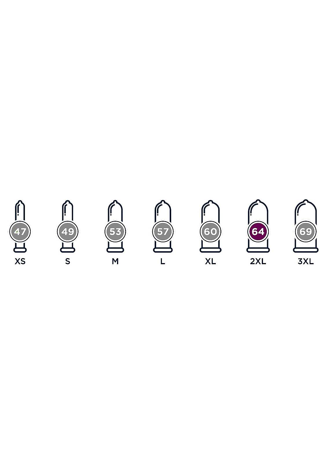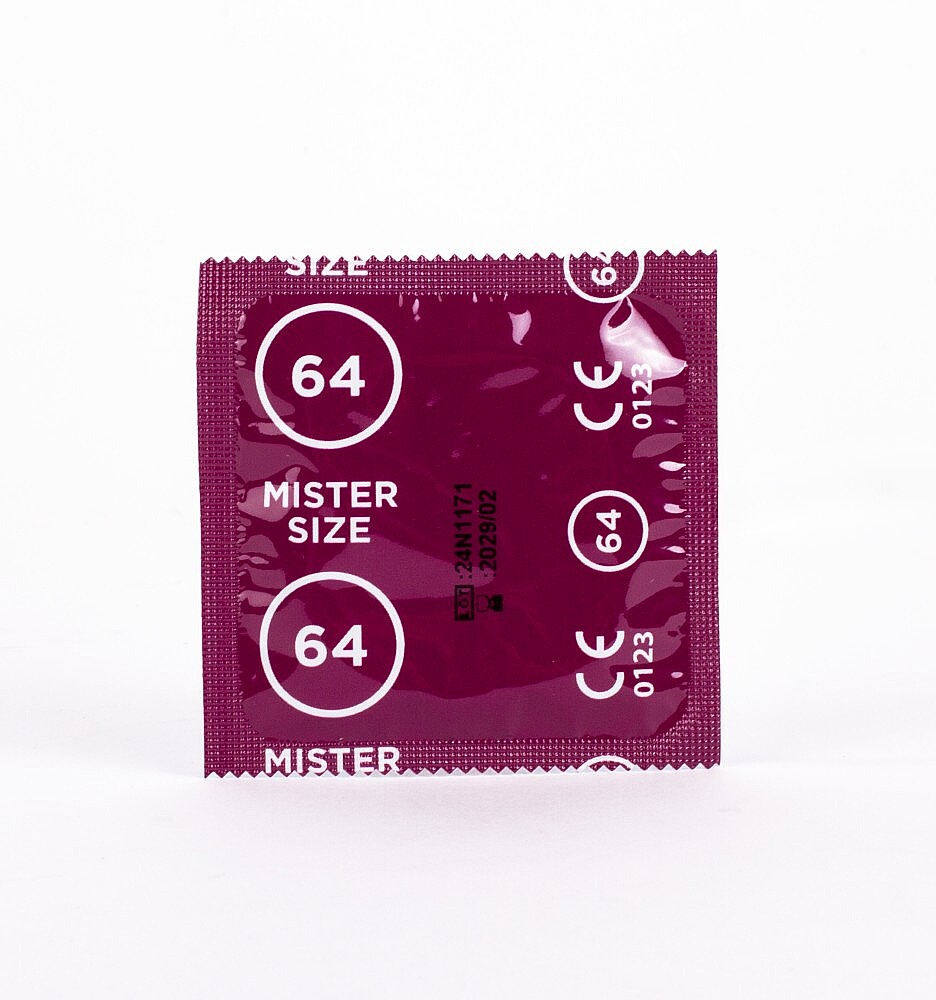 With MISTER SIZE CONDOM SIZE XXL 64mm, enjoy an irresistibly natural feel thanks to an ultra-fine 0.05 mm thickness that amplifies every move. Precision size fine-tuning ensures the XXL fit stays secure and non-slip on slimmer penises. Natural rubber latex is transparent and smooth, highlighting closeness and visual allure. The pre-lubricated surface delivers effortless gliding and uninterrupted rhythm. A reservoir tip adds peace of mind when things heat up. Vegan composition means a conscious choice without compromise. The 64 mm nominal width is tailored for a 14.5–15.5 cm penis circumference—snug, safe, and all about pure pleasure.