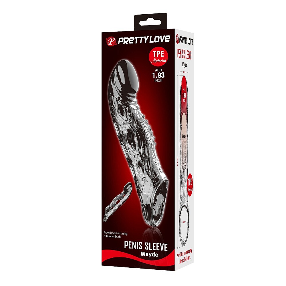 Pretty Love Wayde (Clear) by Pretty Love is a cheeky vibrating penis sleeve that stretches smoothly thanks to its soft, elastic TPE and hugs you comfortably. The testicle loop keeps everything steady so you can focus on pure pleasure. A small yet powerful mini vibrator pulses inside, adding electric waves of stimulation with every thrust. The extended tip brings deeper sensations for her while helping you achieve a firmer, longer-lasting erection. Its flexible body feels great on skin, and each vibration plays with sensitive spots to turn foreplay and intercourse into a long, exciting adventure. With stable hold, easy wear, and intense stimulation zones, Pretty Love Wayde (Clear) invites you to explore tender teasing and bold passion together.