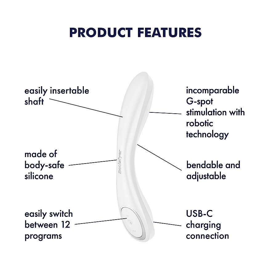 Satisfyer G-Spot Wave 2 (Ice Blue) teases your G-spot with realistic finger-like spiral motions powered by smart Robotic Technology, homing in on your hottest spots with precision. Its ultra-soft, body-safe silicone flexes to your curves and glides like silk—tender yet insistent. Choose from 12 Robotic Wave programs to set your pace, from slow and teasing to bold and intense. Whisper mode keeps your moments discreet, so your secret stays yours. With IPX7 waterproofing, you can dive into bath or shower and let every caress deepen. Intuitive on-device controls keep you in the moment, while USB‑C charging readies it quickly for round two—then three. When you’re done, a quick clean with water, mild soap, and toy cleaner gets it ready to delight you again.