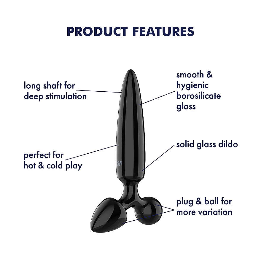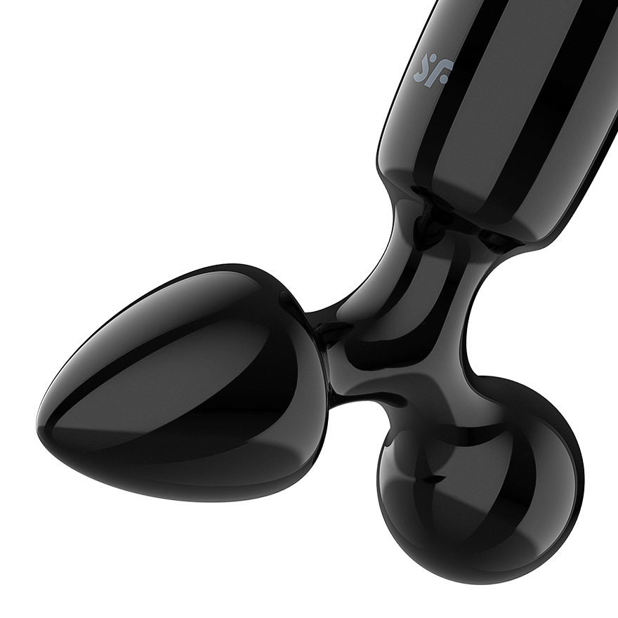Satisfyer Triple Crystal 1 (Black) is a sensual glass dildo delivering triple bliss. Its 21 cm tapered shaft dives exactly where you want it, while two smaller, differently shaped plugs invite you to switch tempos and sensations. The silky-smooth surface glides like satin and, with a drop of lube, turns into a seamless dance across your curves. Temperature-resistant borosilicate glass unlocks hot and cold play—warm it in water or chill it in the fridge and let your nerve endings sparkle. The wide base keeps everything safely anchored, making it an ideal choice for anal pleasure too. The unisex design welcomes solo play and partner foreplay alike—on clitoris, vagina, and anus—and even doubles as a luxurious full-body massager. Durable glass is shatterproof, lightweight, hygienic, and easy to clean. Satisfyer Triple Crystal 1 (Black) is a crystal invitation to precise stimulation that pampers every millimeter of your body.