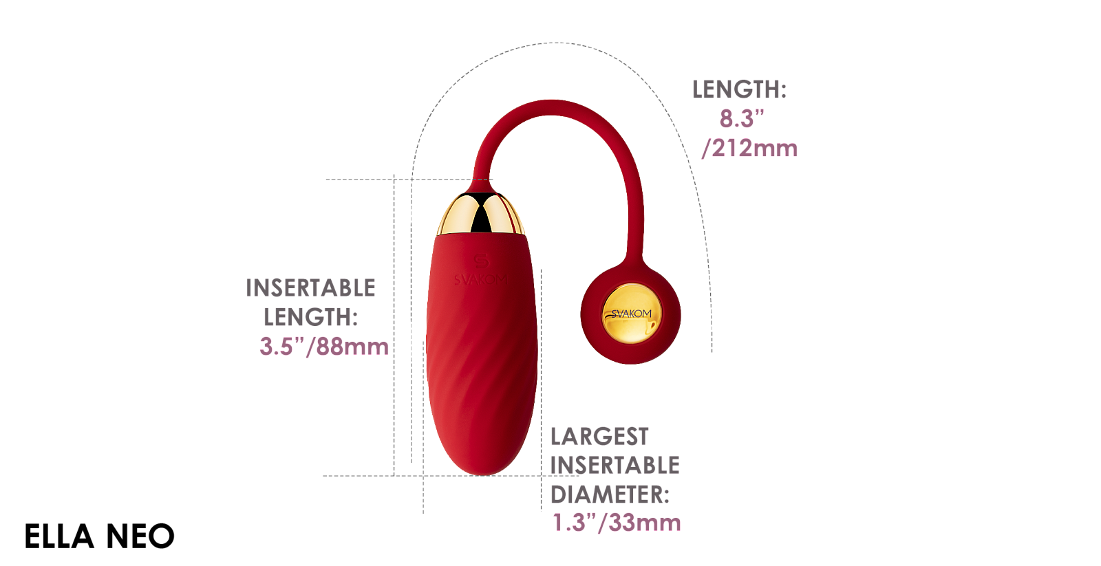 The vibrating egg Svakom Ella Neo (Pink) App Controlled from Svakom invites internal and external stimulation and seductively whispers thanks to 11 quiet, varied modes. With a single press of the button at the end of the loop, you’ll sink into a rhythm you’ll love, and the SVAKOM Mode will surprise you with a random flurry of vibrations.