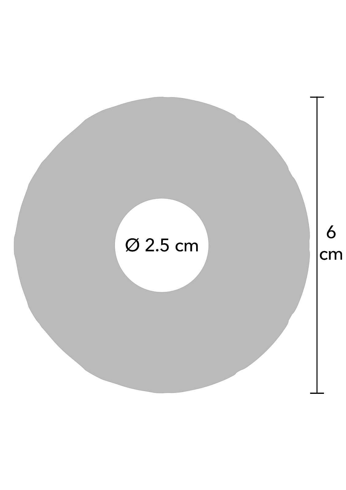 - Diameter: 2.5 cm (inner), 6 cm (outer)