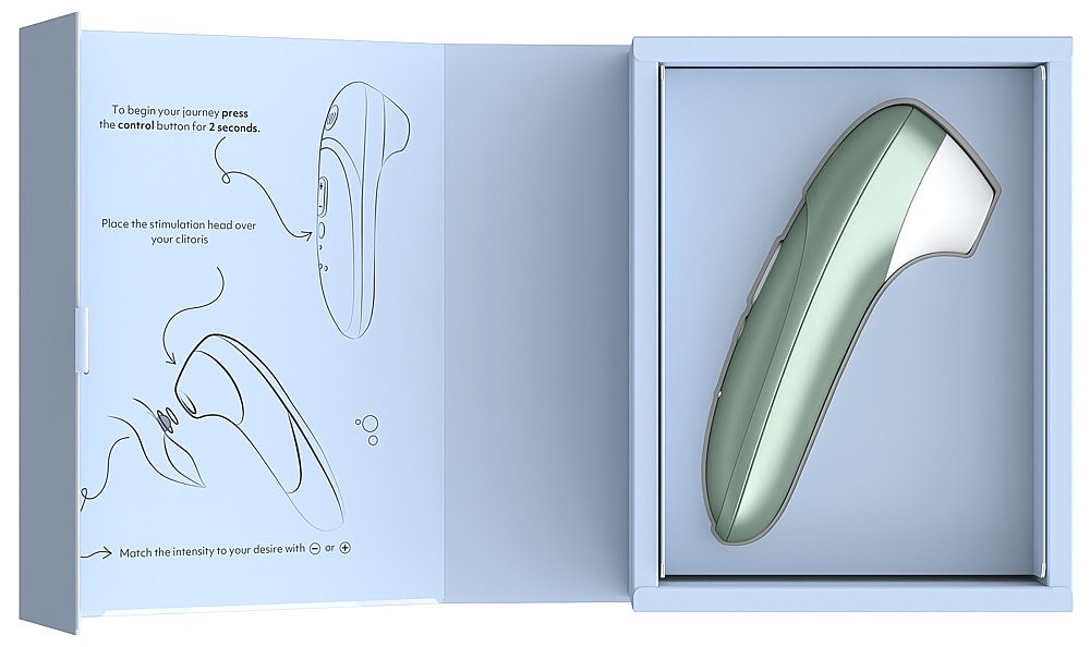 Womanizer Pro (Sage) delivers legendary touchless stimulation that surrounds the clitoris with silky air waves for pure, focused pleasure. With 11 Pleasure Air intensities, glide from feather-light teasing to deeply satisfying surges and control every peak. The whisper-quiet motor keeps your secret safe while you revel in quick, multiple orgasms within minutes. Its compact size slips into your hand or purse, and the intuitive controls let you change levels without breaking the spell. Enjoy wet-play freedom thanks to its waterproof build, and keep the fun going with USB rechargeable power. Silky silicone and durable ABS feel great on skin and clean easily.